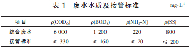 醫(yī)藥中間體生產(chǎn)廢水由工藝廢水和生活污水2部分組成,綜合廢水水質(zhì)指標均為平均值,排放標準執(zhí)行當?shù)貓@區(qū)污水處理廠的接管標準。廢水水質(zhì)及接管標準見表1。廢水產(chǎn)生量約為260 m3/d,設計處理量為300 m3/d。