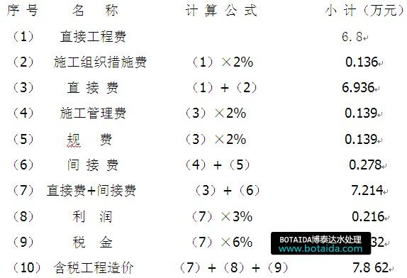 工程總造價(jià)=土建工程費(fèi)+設(shè)備設(shè)施及器材購(gòu)置及安裝費(fèi)+其他費(fèi)用=7.862萬(wàn)+9.25萬(wàn)+0.684萬(wàn)=17.796萬(wàn)元。