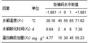 表1 響應(yīng)面試驗(yàn)因素編碼與水平