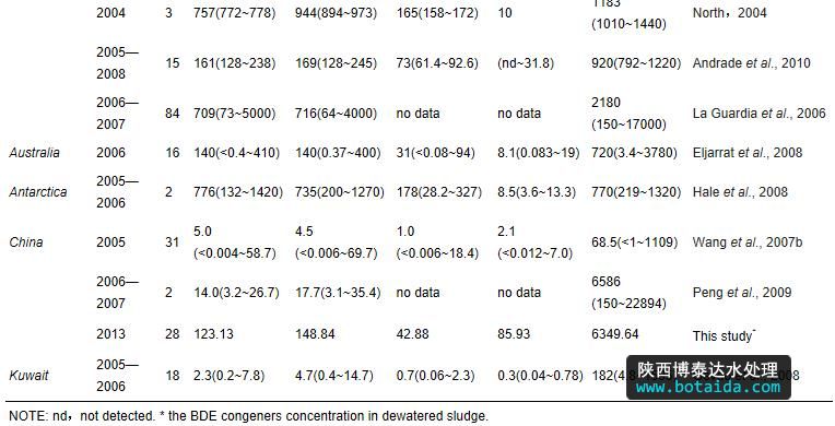 3)污水和污泥是環(huán)境中PBDEs的一個(gè)重要來(lái)源,但是對(duì)環(huán)境的影響有限,特別是污泥農(nóng)用.