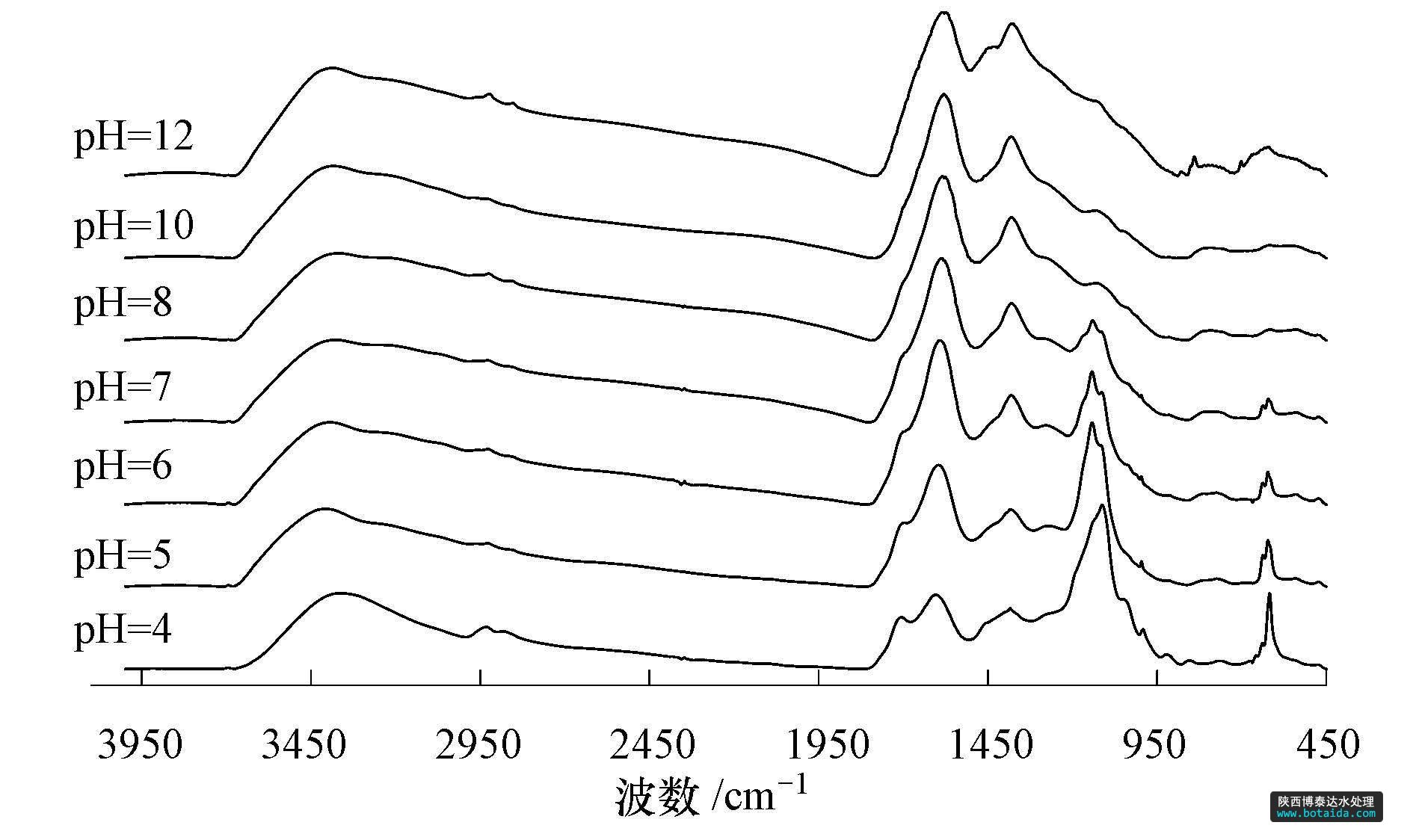 圖3 不同pH下溶液中提取的腐殖酸紅外光譜圖