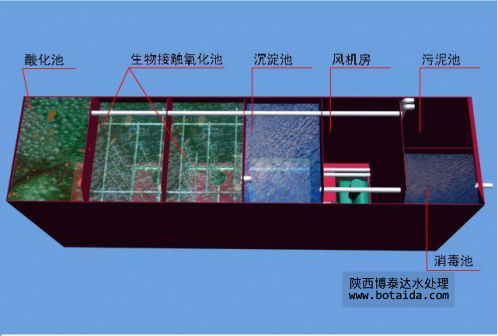 2、生化池采用生物接觸氧化法,其填料的體積負(fù)荷比較低,微生物處于自身氧化階斷,產(chǎn)泥量少,僅需三個月(90天)以上排一次泥(用糞車抽吸或脫水成泥餅外運(yùn))。