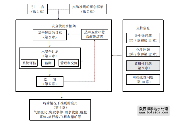 飲用水中可能含有對人類健康產(chǎn)生危害的放射性物質(zhì)(“放射性同位素”)。這種方式造 成的健康風險一般來說比微生物和化學物質(zhì)造成的要小。除了極端情況下,由飲用水中放 射性同位素暴露攝取的輻射劑量遠小于從其他放射性來源的輻射劑量。本章的目的是為評 估飲用水中放射性同位素的安全性提供標準以及為通過減少放射性同位素的含量(如果有 必要的話,需減少放射劑量)來降低健康風險提供指導。