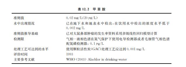 甲草胺(化學(xué)文摘編號(hào)CASNo.15972 60 8)是一種苗前和苗期使用的除草劑,主要 用于控制玉米及其他多種農(nóng)作物田地中一年生的雜草和多種闊葉雜草。甲草胺主要通過(guò)揮 發(fā)、光降解和生物降解作用從土壤中消失。在土壤中可發(fā)現(xiàn)多種甲草胺的降解產(chǎn)物。歐盟 和加拿大采取的最新監(jiān)管制度中,盡管可以在使用前告知大眾需要使用甲草胺,但其依然被 列為禁止使用的農(nóng)藥(見表12.2)。