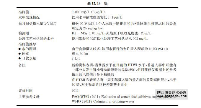 鎘化合物的吸收取決于它們的溶解度。鎘主要在腎臟蓄積,在人體的生物半衰期長達 10~35年。有證據表明,鎘能夠通過吸入途徑致癌。IARC將鎘及鎘的化合物列入2A組 (對人類很可能(probably)是致癌物)。不過,目前沒有鎘經口途徑致癌的證據,鎘的遺傳毒 性也沒有明確的研究。腎臟是鎘毒性的主要靶器官。 在對鎘最近的評估中,JECFA相關報告表明,50歲及以上個人的尿液中生物標志物β2 微球蛋白的排泄數(shù)據可用于確定尿液中鎘的臨界濃度。每克肌酸酐含量小于5.24μg鎘的 尿液與β2 微球蛋白的增加排泄不相關,導致尿鎘濃度為5.24μg/g肌酸酐的食物攝取量估 計為每天0.8μg/kgbw或約每月25μg/kgbw。由于鎘的超長生物代謝半衰期,暫定 犘犜犕犐值為25μg/kgbw,取代了之前設定犘犜犠犐的7μg/kgbw。