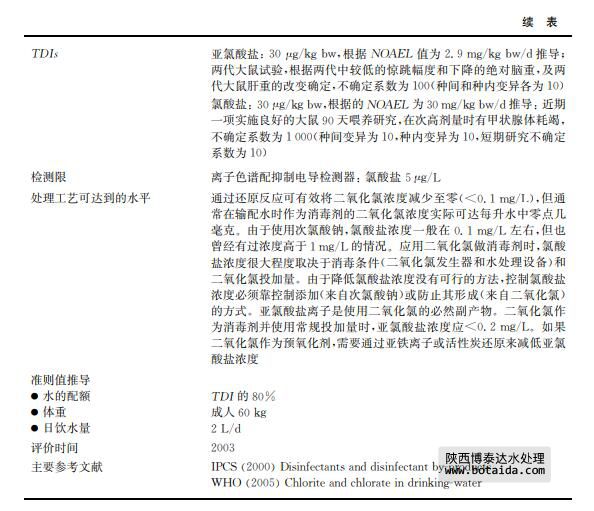 亞氯酸鹽和氯酸鹽是使用二氧化氯作為消毒劑或用于去除水中嗅味和異味的副產(chǎn)物 (見表12.28)。二氧化氯同時也用作纖維、紙漿、面粉和油類的漂白劑。亞氯酸鈉和氯酸鈉 用于制備二氧化氯以及其他商業(yè)用途。飲用水出水中,二氧化氯迅速分解成亞氯酸鹽、氯酸 鹽和氯化物離子,其中亞氯酸鹽是主要成分,該反應(yīng)在堿性條件下容易進(jìn)行。飲用水是接觸 環(huán)境中二氧化氯、亞氯酸鈉和氯酸鈉的主要途徑。氯酸鹽也會在儲存很久的次氯酸鈉溶液 中生成,特別是在高溫環(huán)境下。