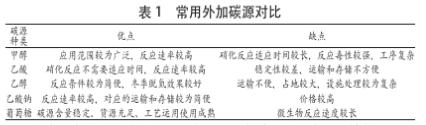 常用的外加碳源有甲醇、乙酸、酒業(yè)廢水、乙酸鹽、淀粉、葡萄糖和食品加工廢水等。表1所示常見的外加碳源的對比效果: