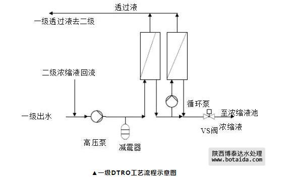 (2)兩級(jí)DTRO系統(tǒng)工藝流程